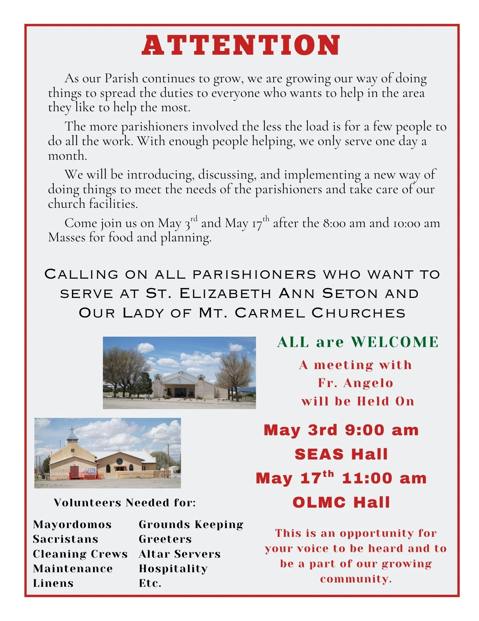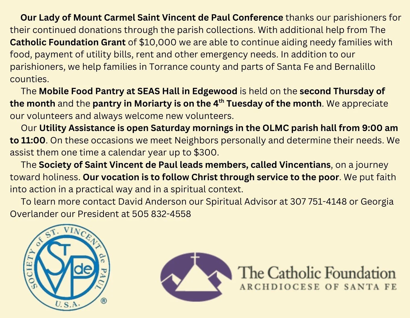 The Parish Bulletin - get your printed copy at Mass or view an electronic copy on this website page: EstanciaValleyCatholic.church/bulletins