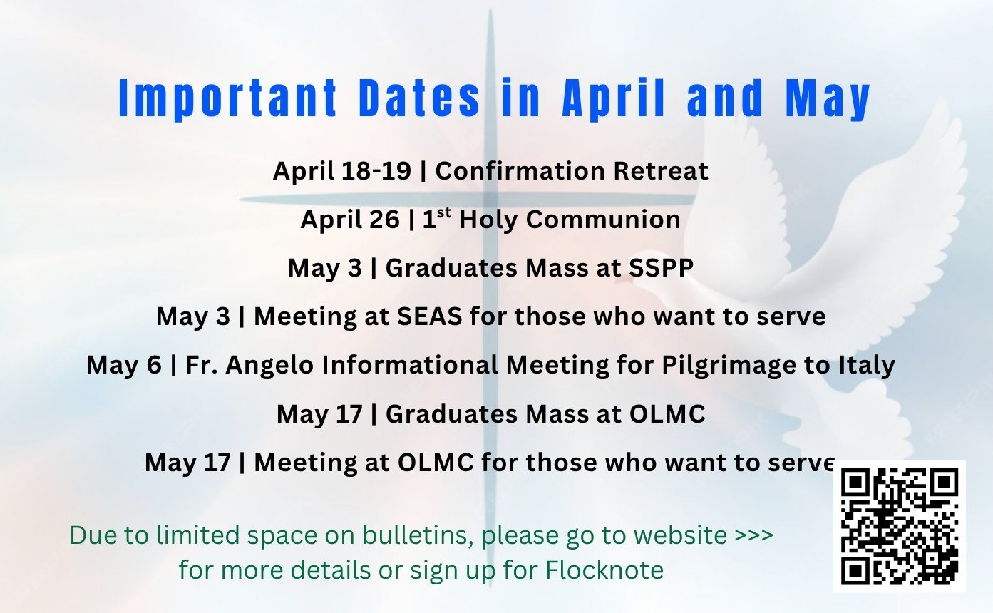 Parish Website - The most recent updates are on the Parish Website “What’s Happening” Page which is this page that you are on now.